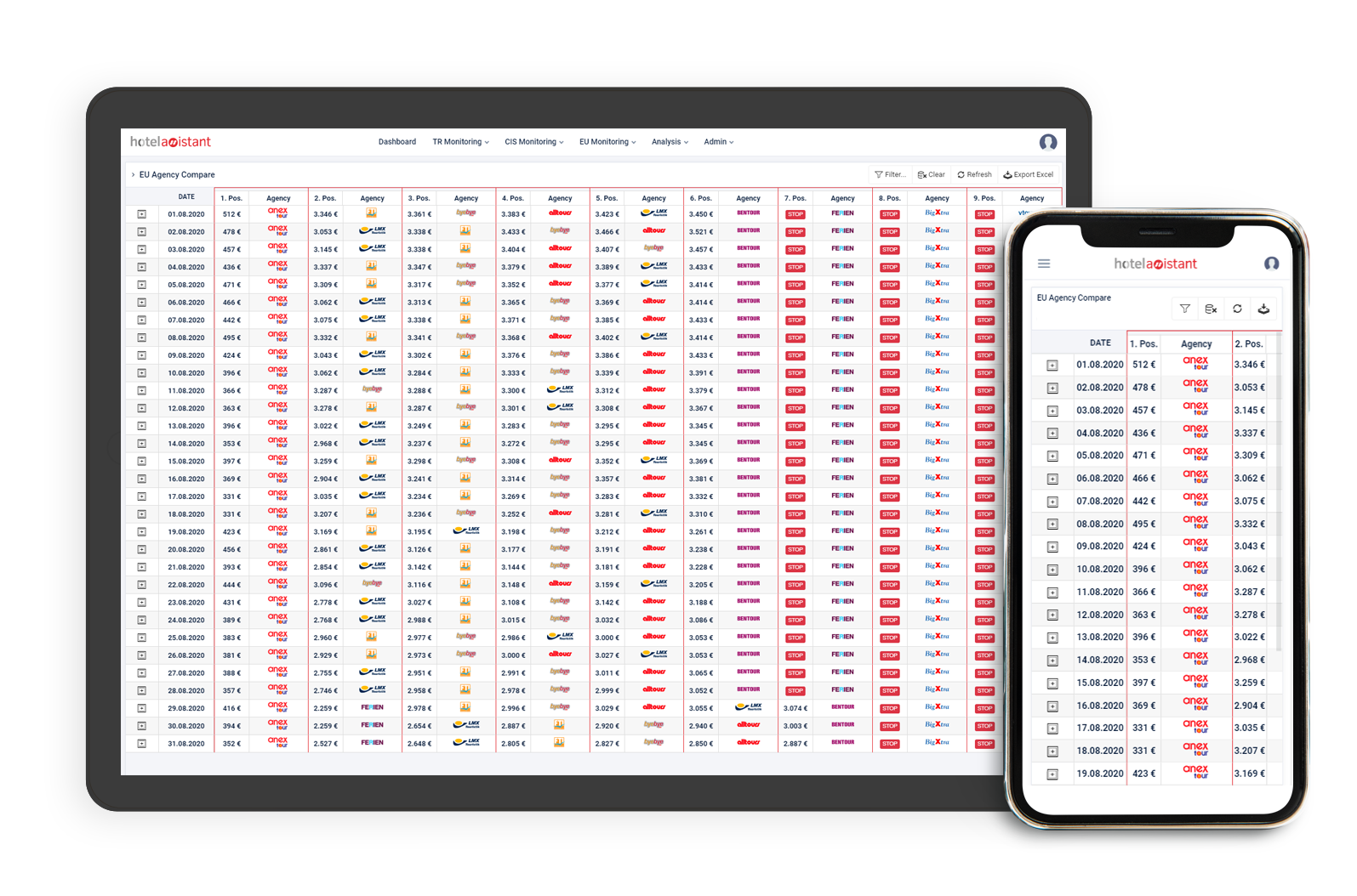 HotelAsistant; oteller için market analizi yapan, anlık fiyat değişikliklerini takip eden ve elde ettiği verileri düzenli okumanızı sağlayan analiz yazılımıdır.